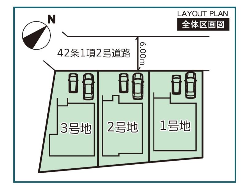 | 私道負担・道路 | 道路幅:6m、アスファルト舗装、公道、私道負担なし |
