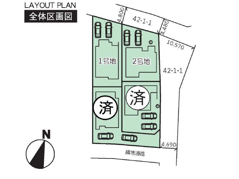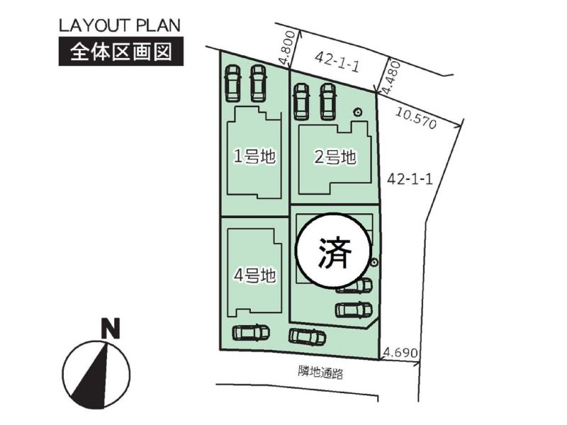 | 私道負担・道路 | 道路幅:4.4m~10.5m、アスファルト舗装、公道、私道負担無し |