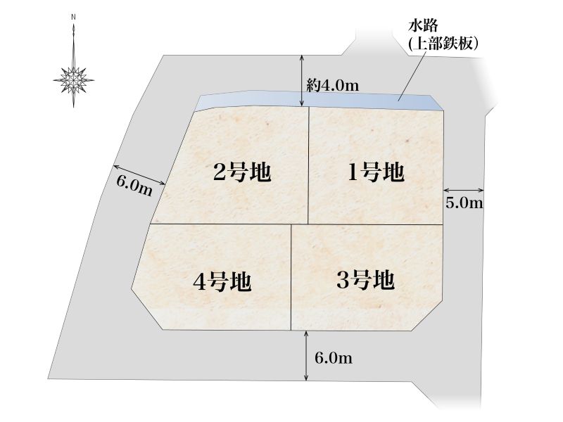| 私道負担・道路 | 私道負担:無 ・ 道路:幅員4~6m |