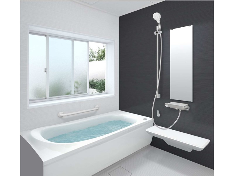 【ユニットバス】リクシルの1616サイズ。サーモバスによりお湯が冷めにくく経済的。お手入れもしやすくなってます(※画像はイメージです)。