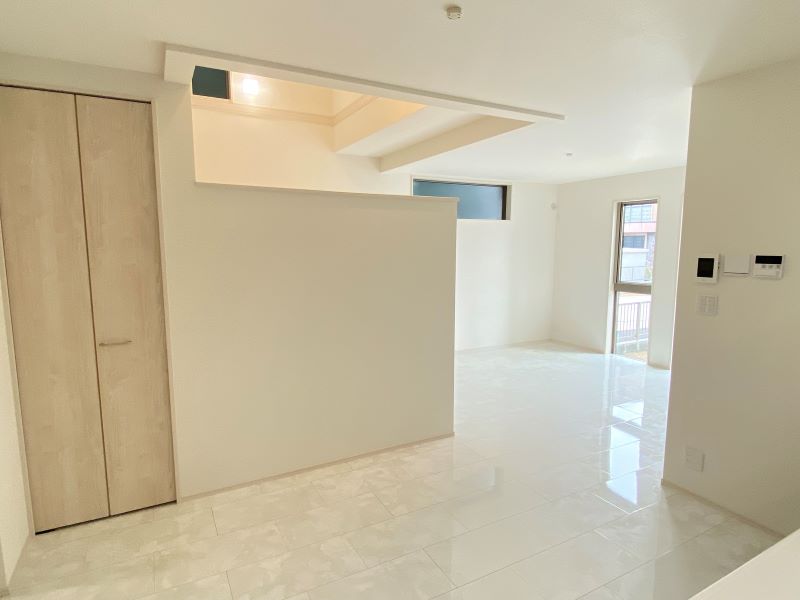 【リビング】フローリングは大理石調の床材を採用。 水や擦り傷にも強く、清潔感と高級感を兼ね備えた床材になります鏡面状になっているのでLDKが明るい空間になります。(※画像はイメージです)