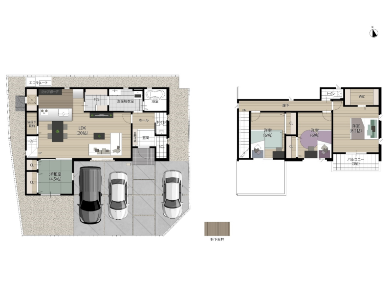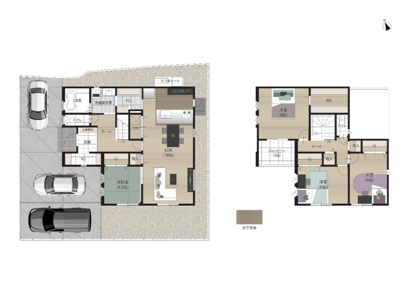 【2号地 外観パース】敷地面積:157.80㎡(47.73坪)/延床面積:117.58㎡(35.56坪)