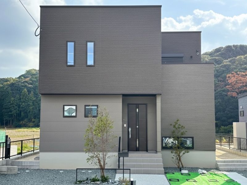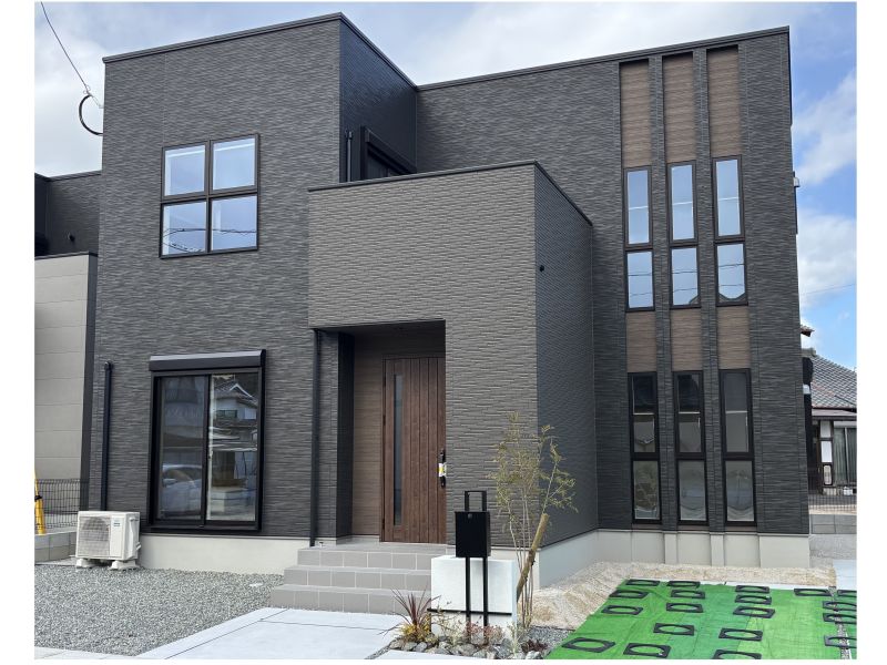 【タマタウンJR筑前深江駅東】即引渡し可!ひとつひとつ違いを持たせたモダンな外観、全6区画の分譲地、堂々完成です。建物110㎡超・並列2台駐車可能。ぜひご見学ください。