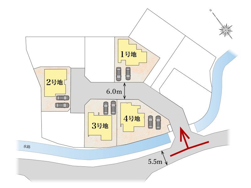 【全体区画図】全区画50坪超のゆとりのある敷地に、駐車2台可能なスペースを確保。