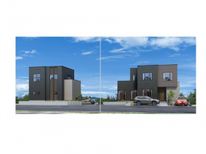 【外観イメージパース】全2邸!ダークカラーを基調とした洗練された外観デザイン。家づくりのノウハウを結集したスタイリッシュな住まいです!