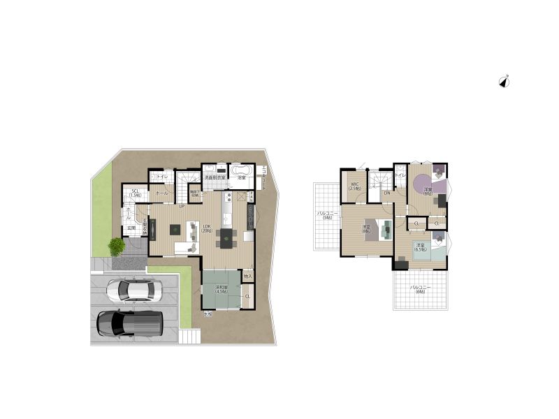 【2号地】販売価格:4,530万円/敷地面積:170.41m2(51.54坪)/延床面積:113.85m2(34.43坪)/間取り:4LDK