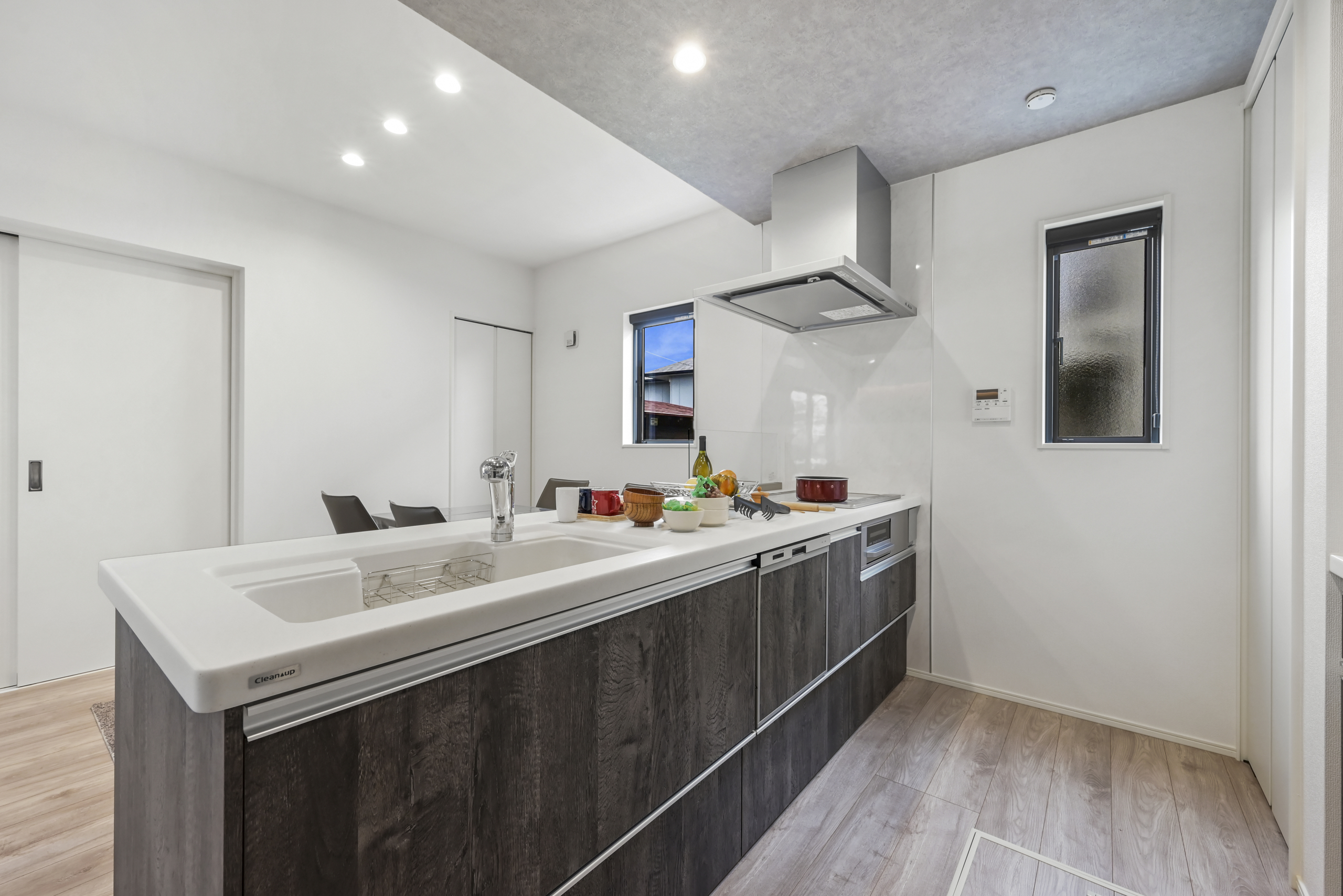 【クリナップ】ワークトップ・シンクともに高級感漂う人工大理石を採用!!食器洗い乾燥機も標準搭載♪ ※カラー・デザインは異なります。