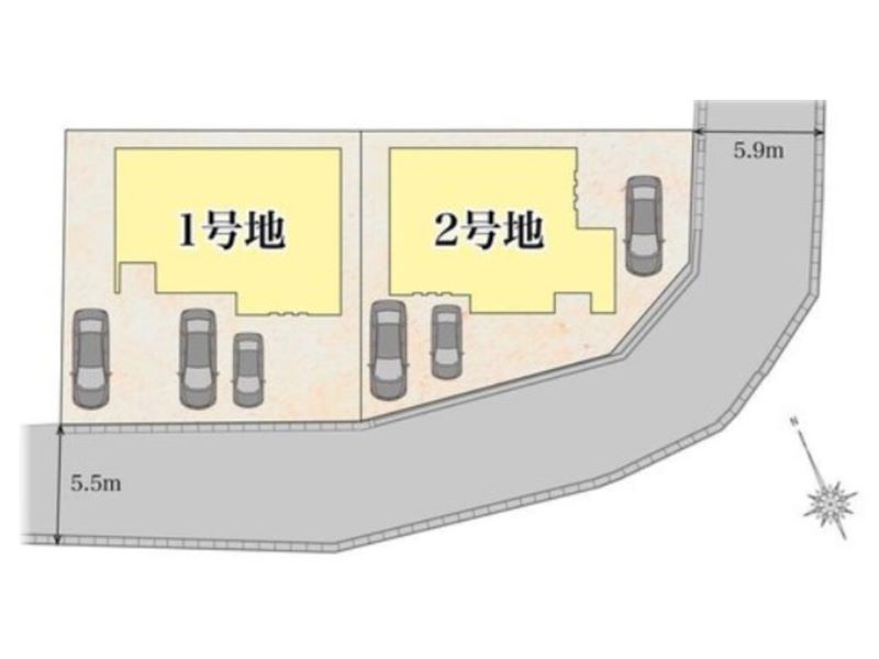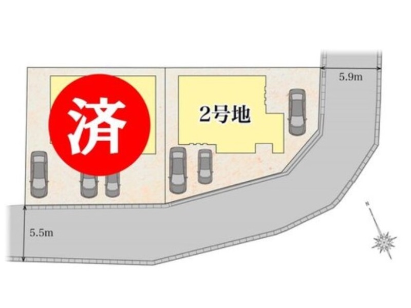 | 私道負担・道路 | 道路幅:5.5m~5.9m、アスファルト舗装、私道負担無し |
