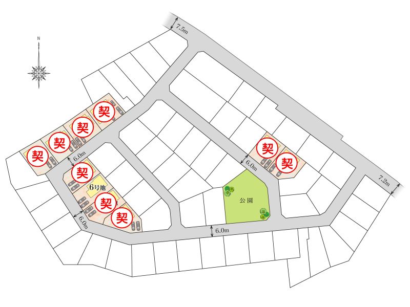 | 私道負担・道路 | 無・道路幅:6m、アスファルト舗装、(開発道路) |