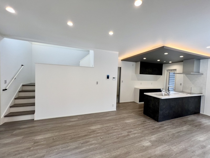 オープンなペニンシュラキッチンを採用(タカラスタンダード「ラクエラ」)。食洗器もついてます。