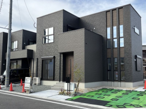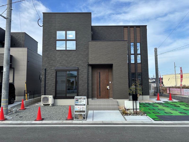 【外観写真(5号地)】市街地にアクセスしやすい便利な立地に、タマホームの戸建分譲住宅4棟が完成します!それぞれに違いを持たせた高級感のある外観に仕上げました。