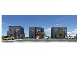 【外観イメージパース(3~5号地)】市街地にアクセスしやすい便利な立地に、タマホームの戸建分譲住宅4棟が完成します!それぞれに違いを持たせた高級感のある外観に仕上げました。