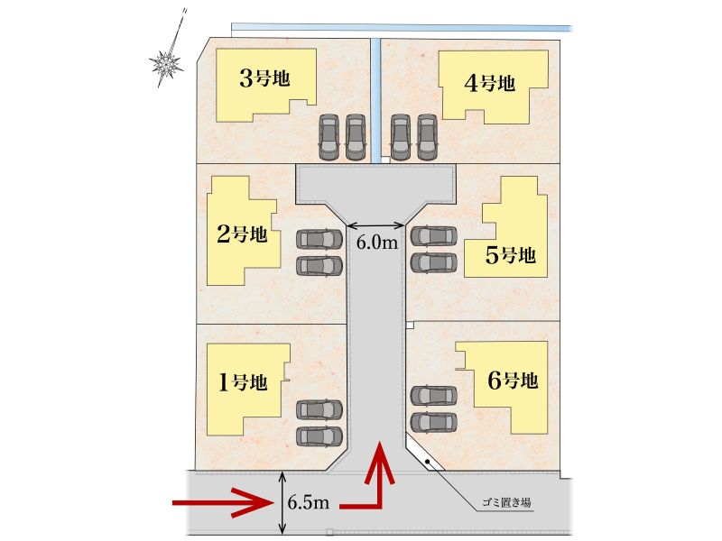 | 私道負担・道路 | 道路幅:6m~6.5m、アスファルト舗装、※私道負担なし |
