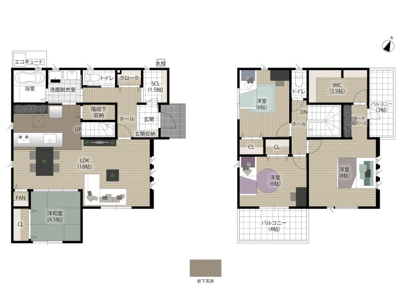 1号地 価格: 3,480万円間取り: 4LDK土地面積: 217.20㎡(65.70坪)建物面積: 113.44㎡(34.31坪)