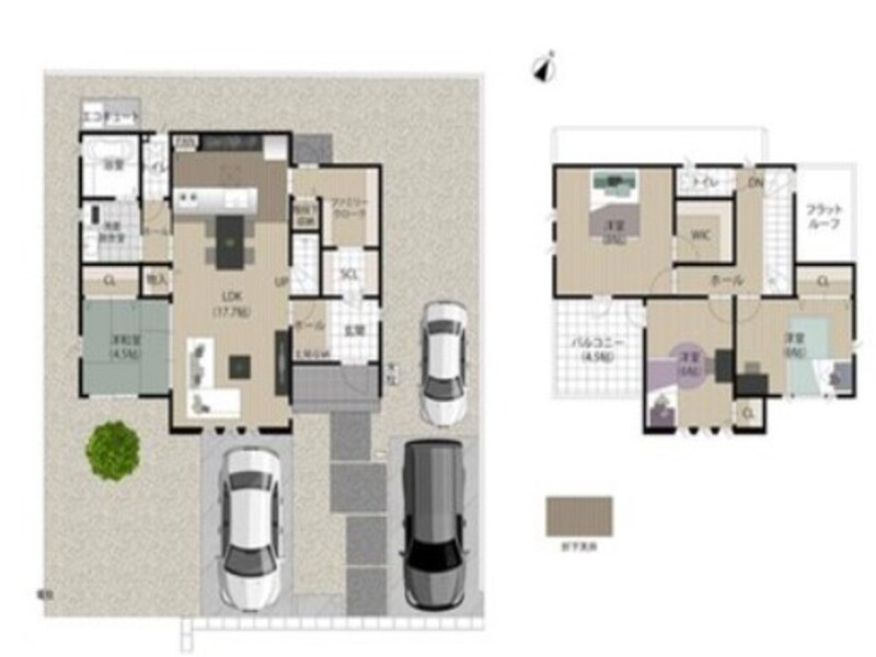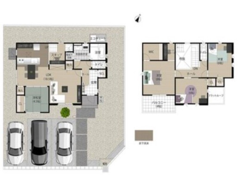 全棟南東向きなので、日当たり良好♪それぞれ個性ある外観デザイン&プランのタマタウン水巻町猪熊全7棟が誕生します!敷地面積60坪以上に駐車スペースを2~3台分確保しました。