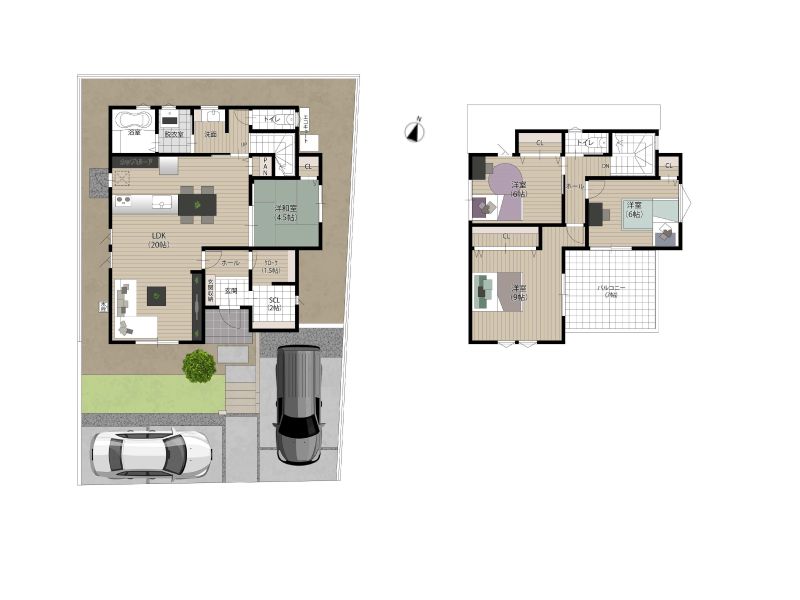 【2号地】販売価格:5,280万円/敷地面積167.19㎡(50.57坪)/延床面積:109.50㎡(33.12坪)/間取り:4LDK