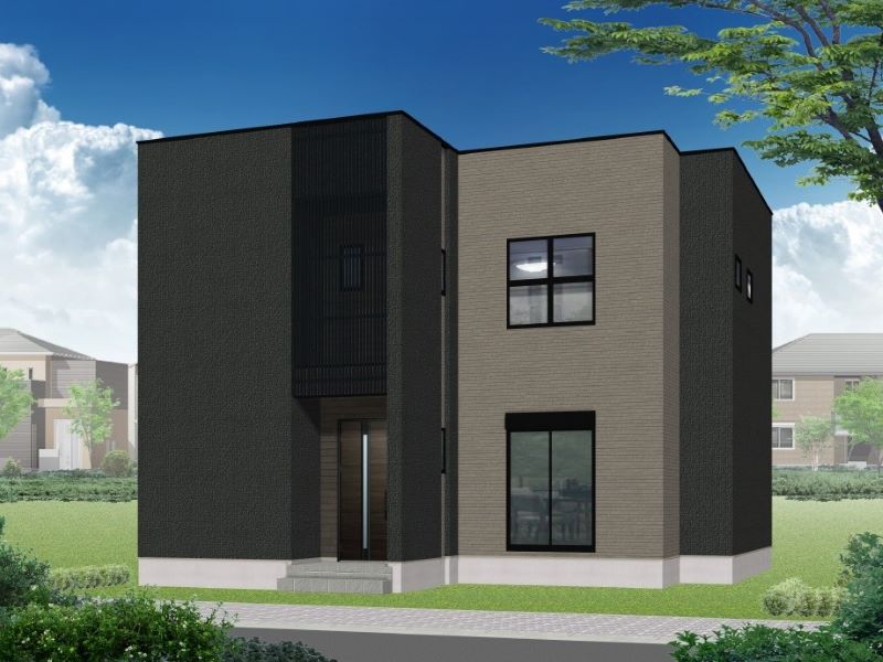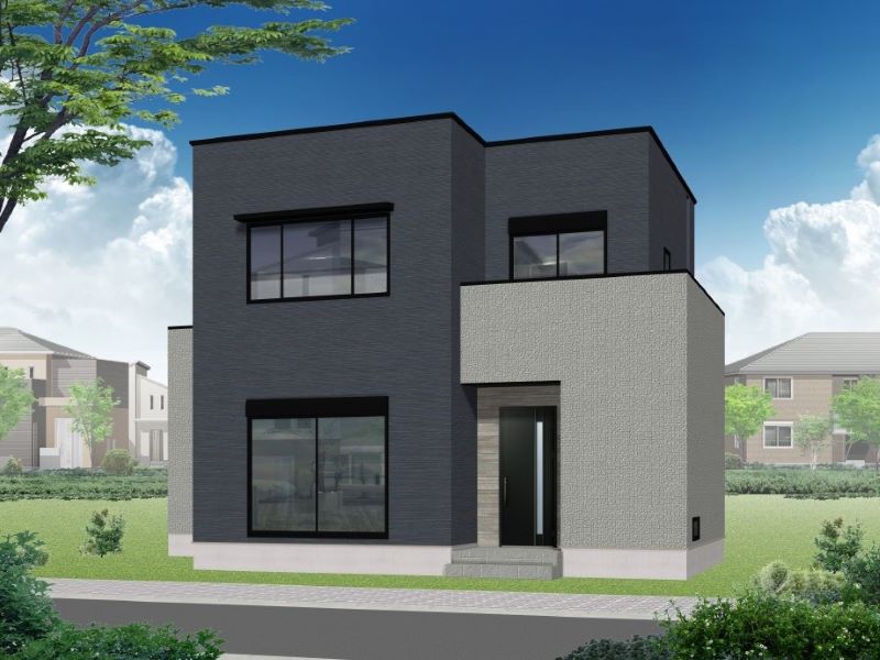 【外観イメージパース】閑静な住宅街の中の新規分譲地。家づくりのノウハウを結集したスタイリッシュな住まいです!日当たりや間取り、利便性など是非現地でご体感ください。