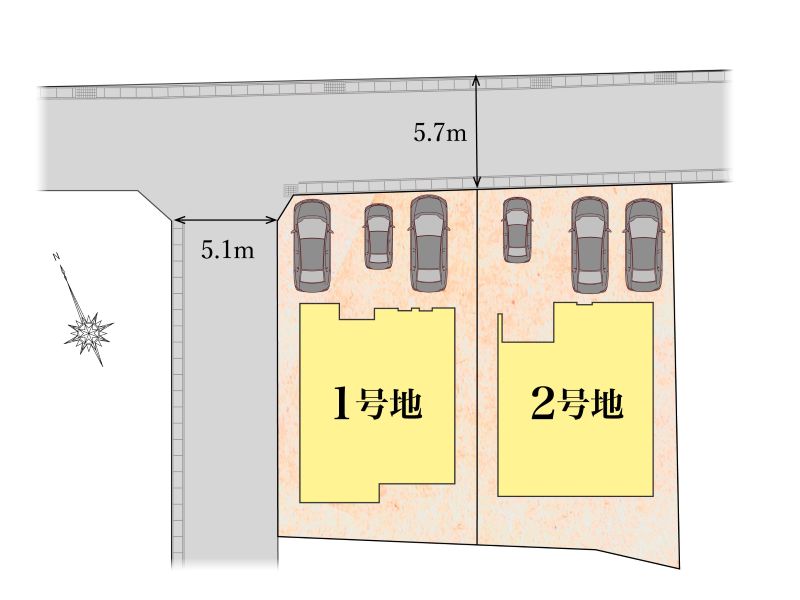 開放的な角地に誕生する「タマタウン大石町」。陽当りや風通しも良好です!前面道路が5.1m以上の広さがありますので、お車の運転や駐車時も安心です。駐車スペースは3台分を確保。