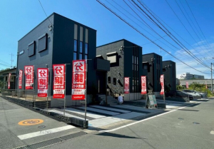 それぞれに違いを持たせた、スタイリッシュで高級感のある外観です。日当りや間取りなど是非現地で体感ください!