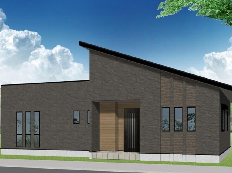 【3号地】 人気のボックス型の外観は、ご家族に長い間親しまれる飽きのこないデザインです。ダークブラウンが柔らかさを演出します。玄関ホールが広々とした設計。縦連窓を設置し光がたっぷり入る明るい玄関です。