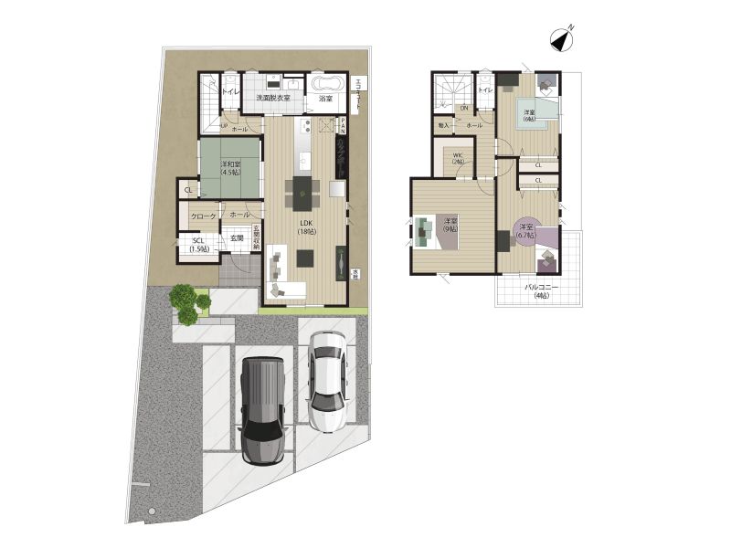 【6号地】敷地面積:185.54㎡(56.12坪)/延床面積:111.58㎡(33.75坪)/間取り:4LDK