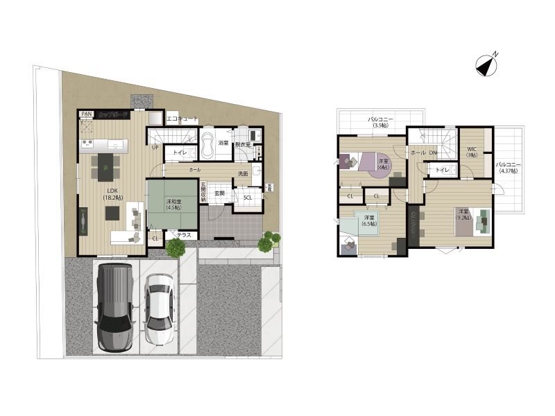 【1号地】敷地面積182.15㎡(55.10坪)/延床面積:112.19㎡(33.93坪)/間取り:4LDK