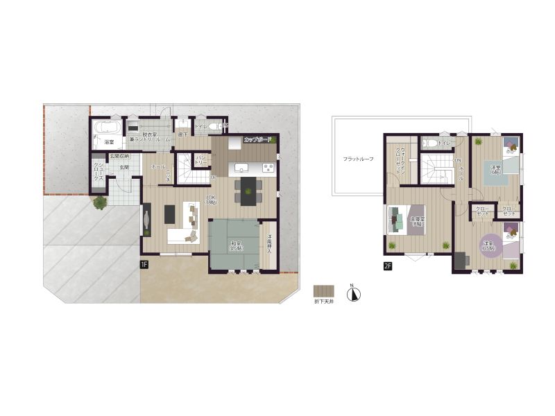 | 延床面積 | 113.02㎡(34.18坪)・114.68㎡(34.69坪) |