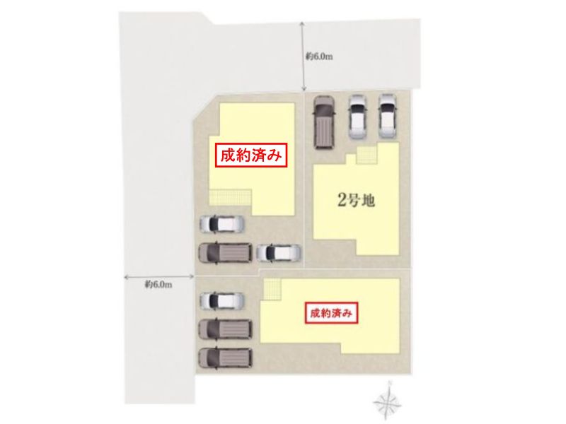 | 私道負担・道路 | 私道負担:無・道路:北側:市道、幅員6m、西側、市道、幅員6m |