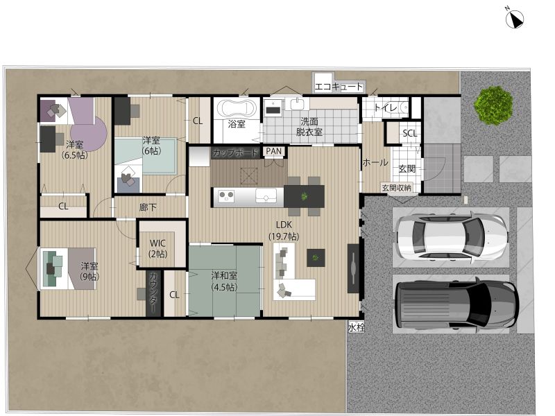 | 延床面積 | 105.16㎡(31.81坪)~106.82㎡(32.31坪) |