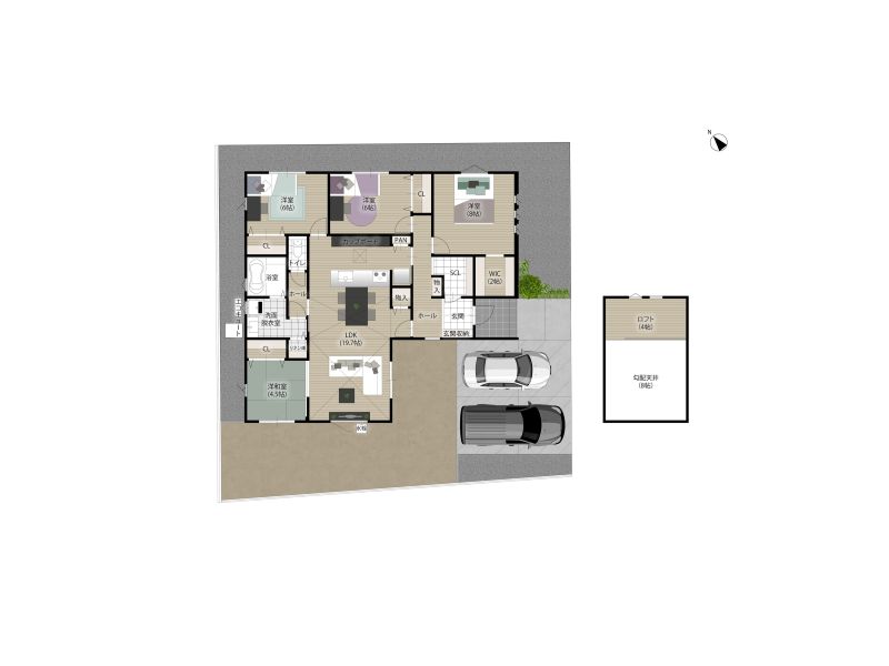 【4号地】4.0帖のロフト、WIC、SCLなどのたっぷりの収納スペースを完備♪すっきり収納が叶い、居住スペースを広く使えます。暮らしやすさへの工夫が詰まった住まいです。