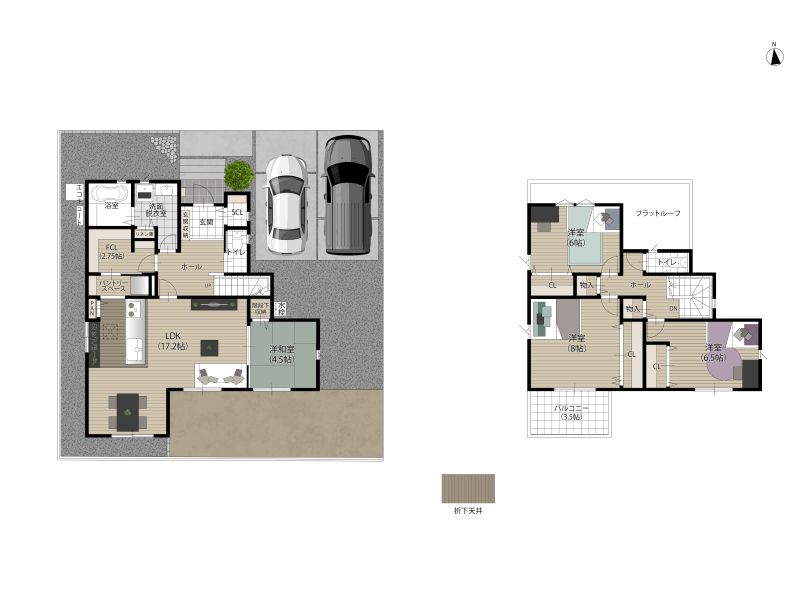 【6号地 完成イメージ】■敷地面積/170.66㎡(51.62坪)■延床面積/115.51㎡(34.94坪)■1F床面積/65.00㎡(19.66坪)■2F床面積/50.51㎡(15.27坪)