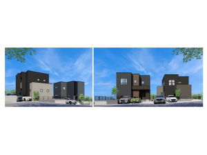 【全4棟】今回販売区画7区画。充実の環境と設備を備えた新築戸建分譲住宅。全区画駐車スペース3台以上可能。右から3号地、4号地、5号地 完成イメージパースです。