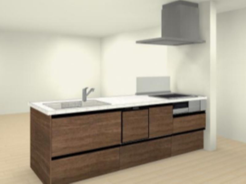 広いワークトップは人造大理石で傷も付きにくくお手入れが簡単です。(※画像はイメージです)