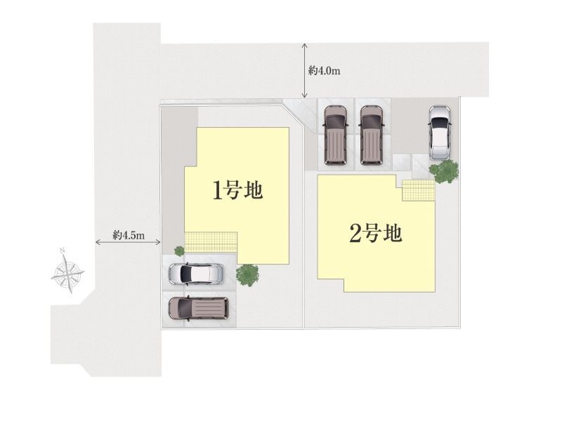 | 私道負担・道路 | 有(※2号地/負担金なし)・1号地/西側公道約4.5m幅、2号地/北側私道約4m幅 |