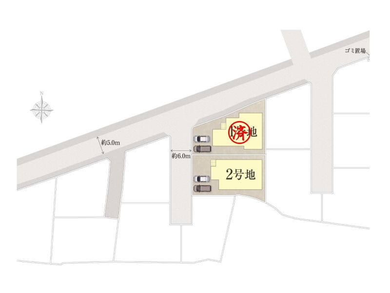 | 私道負担・道路 | 私道負担:あり(負担金なし) ・ 道路:西側私道約6m |