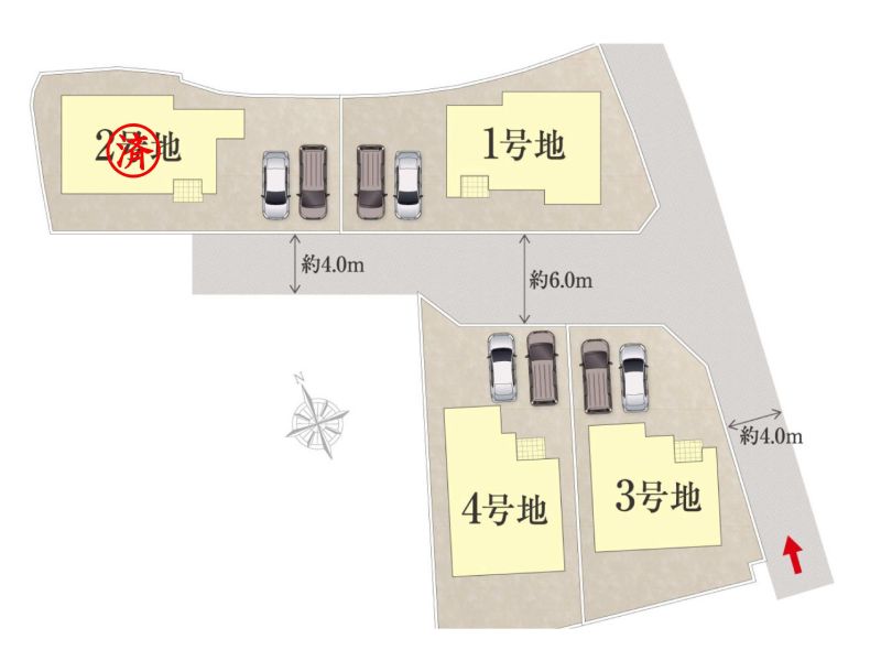 | 私道負担・道路 | 私道負担:有(負担金なし)・道路:南側私道約4~6m、東側公道約4m |