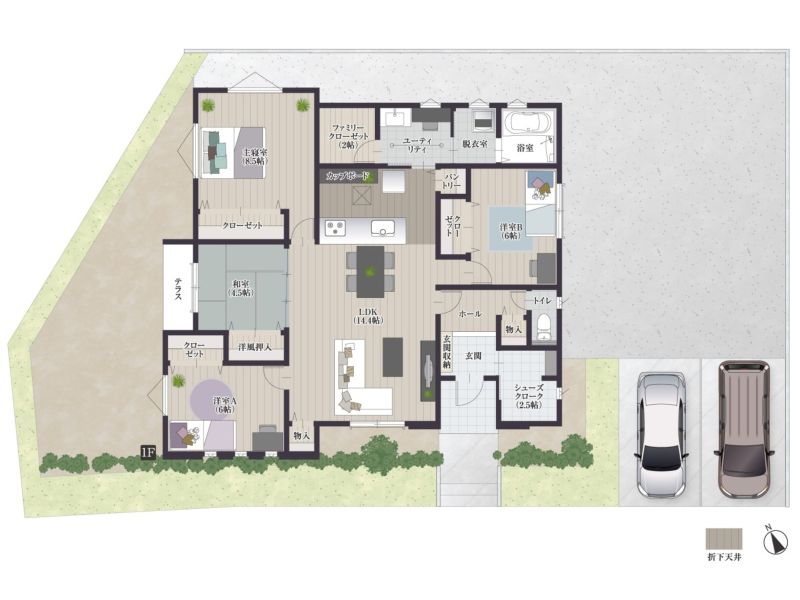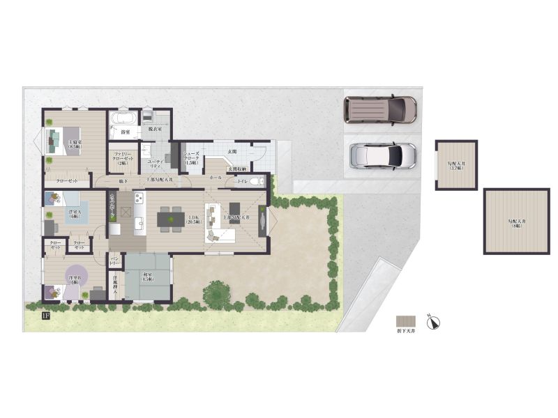 | 延床面積 | 102.27㎡(30.93坪)・112.13㎡(33.91坪) |