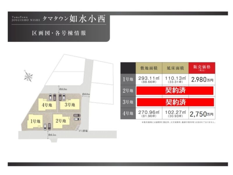 | 土地面積 | 270.96㎡(81.96坪)・293.11㎡(88.66坪) |