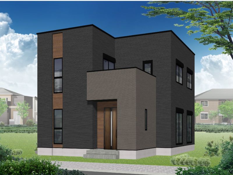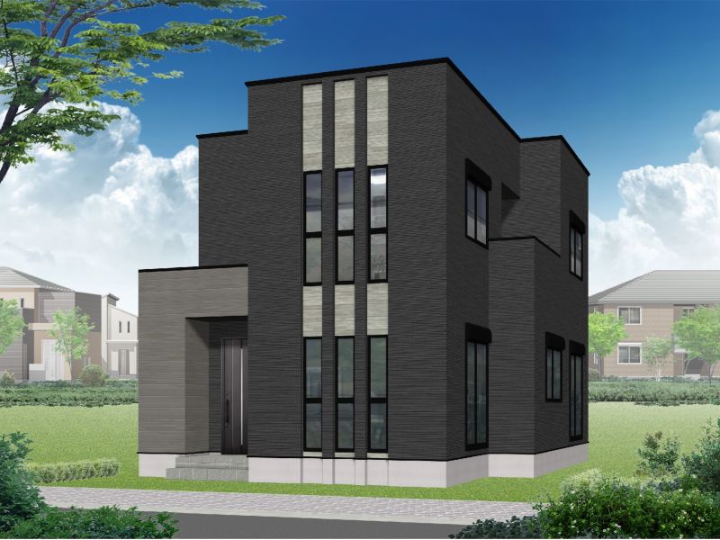 【2号地 外観パース】敷地面積:179.5㎡(54.32坪)/延床面積:114.68㎡(34.69坪)/間取り:4LDK