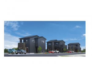 ダークカラーでまとめたシックなスクエアフォルムの外観の街並みが目を惹きます。 全区画62坪以上の並列駐車3台が可能なゆったりとした敷地に、こだわりの邸宅が誕生します。
