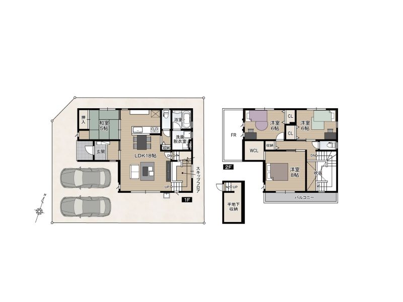 フロア下や階段下には広々収納スペースを確保。普段使用頻度が高くない物やシーズンオフの衣類の収納などを用途様々。限られた敷地を最大限に使える空間設計です(画像はイメージ)。