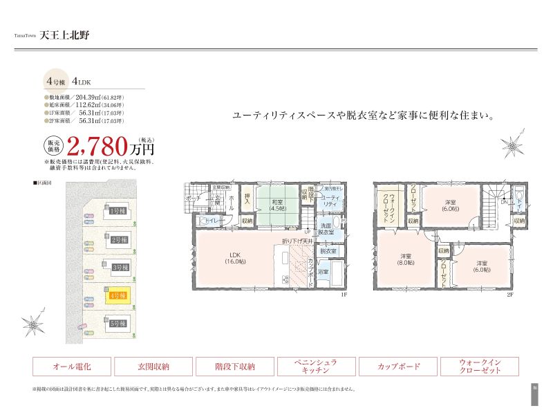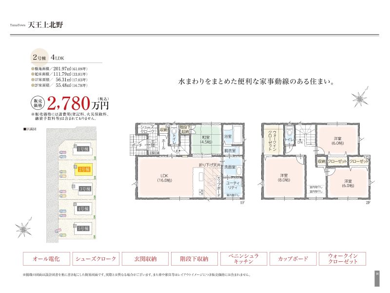 | 土地面積 | 201.97㎡(61.09坪)~204.39㎡(61.82坪) |