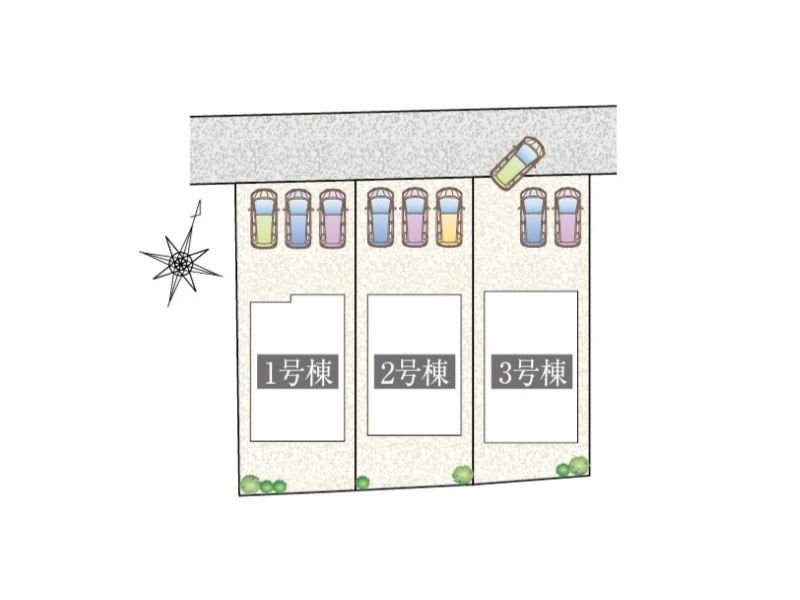 | 土地面積 | 173.80㎡(52.57坪)・171.56㎡(51.89坪)・169.00㎡(51.12坪) |