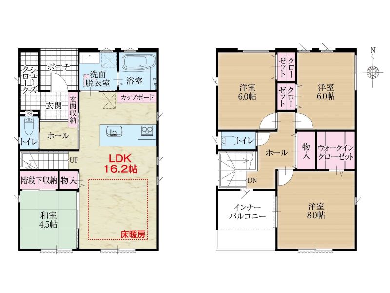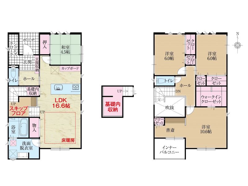 | 延床面積 | 105.18㎡(31.81坪)・122.57㎡(37.07坪) |