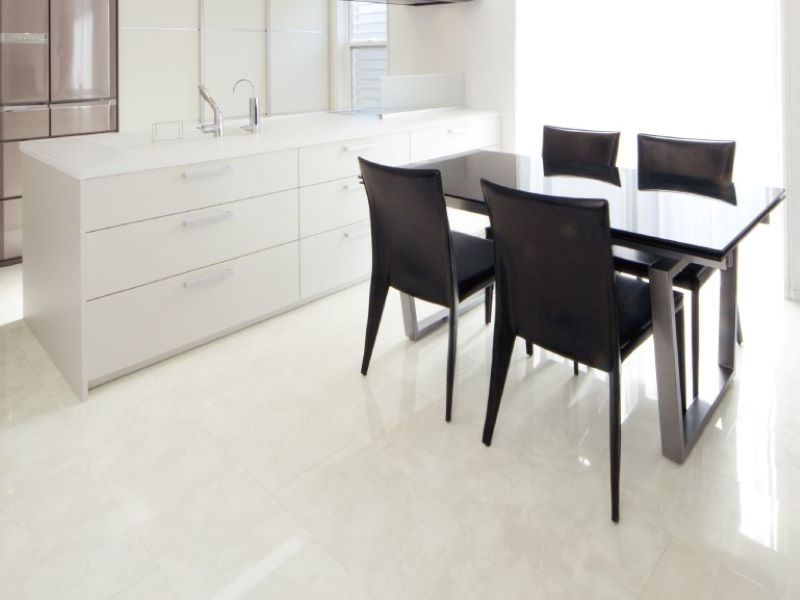 1階の床材には大理石調のフローリングを採用。高級感が出るだけでなく、水や擦り傷に強いワンランク上のフローリング。さらに、お部屋を明るく見せてくれる効果も!