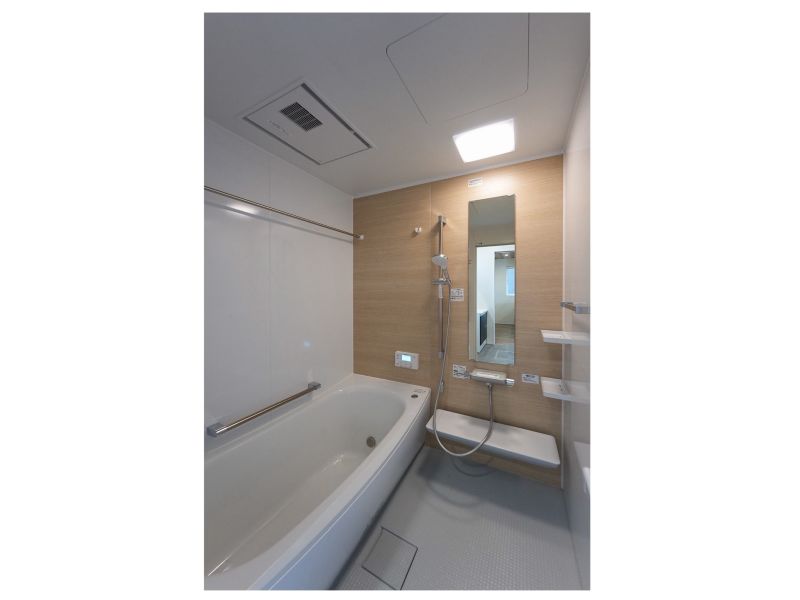 ユニットバス ■浴室乾燥暖房機付き ■魔法びん浴槽は4時間以上経っても温度低下はわずか2.5℃ ■断熱防水パンのフタでさらに保温が長持ち