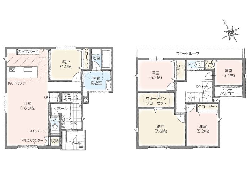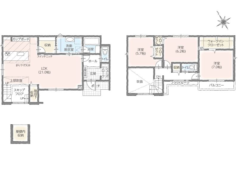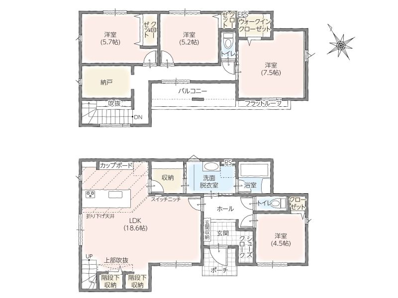 【2号棟】間取り:4LDK+S/土地面積:169.03㎡/建物面積:116.76㎡