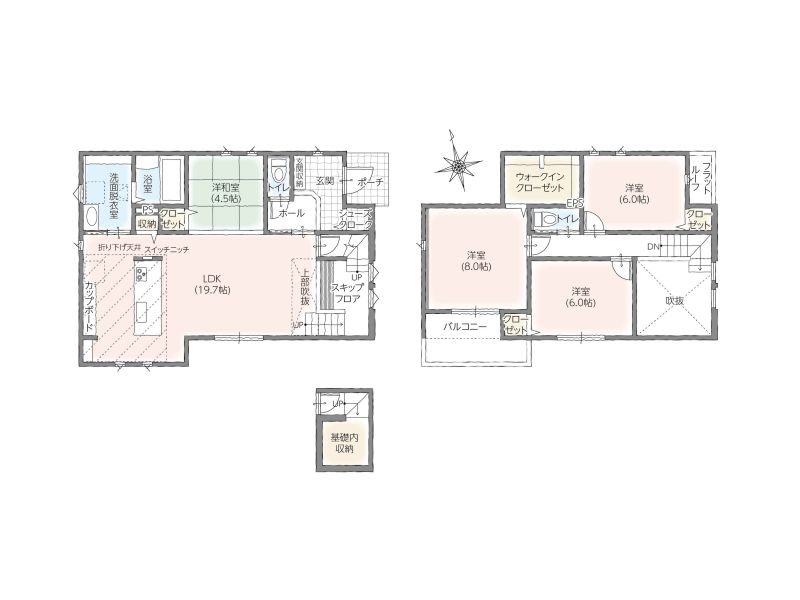| 延床面積 | 113.02㎡(34.18坪)~118.40㎡(35.80坪) |