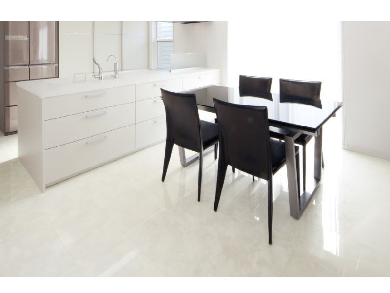 1階の床材には大理石調のフローリングを採用。高級感が出るだけでなく、水や擦り傷に強いワンランク上のフローリング。さらに、お部屋を明るく見せてくれる効果も!