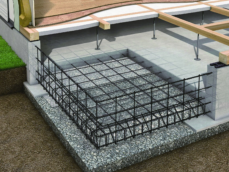 【ベタ基礎工法】鉄筋コンクリートのベタ基礎を採用。地面から上がってくる湿気を防ぎ、シロアリの侵入も防ぎます。